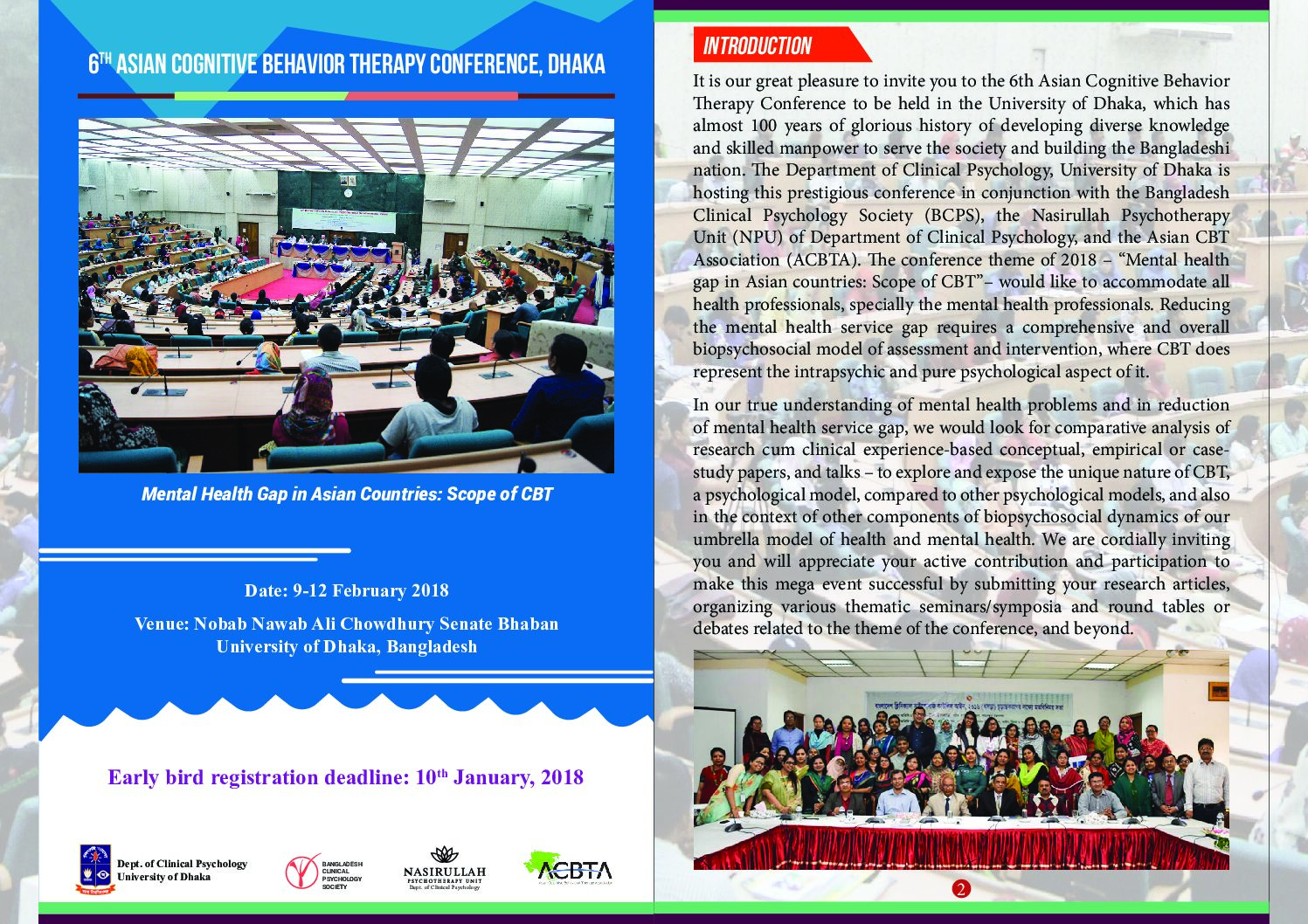“Clinical Psychology for Quality Life” is the vision statement of Bangladesh Clinical Psychology Society (BCPS). The Society is the voice of clinical psychology in Bangladesh to promote and advance mental health within the context of improving psychosocial well-being and scientific knowledge. The Society supports research, education, and professional training, promoting and ensuring the highest standards of effective, efficient, and ethical practice of its members. BCPS is socially responsible to ensure that psychological aspects are considered by the policymakers in different national emergent issues.